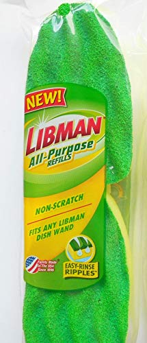 Six 2-Packs (12 Pads) of Best Selling American Made Libman Dish Wand Refills. Includes 6 Gentle Touch Scratch Free Sponge Refills PLUS 6 All-Purpose Non-Scratch Dishwand pads.Value Package gives you both types of Premium Dish Washing Scrub sponges. They fit any Libman Dish Wand. Gentle cleaning, tough scrubbing, long lasting and hold soap well. Plus they won't harm your coated pans or pots and won't scratch delicate glassware.