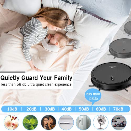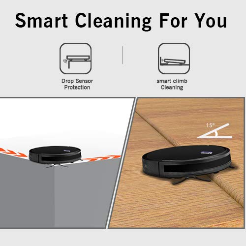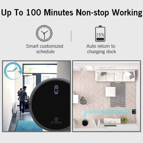 PREMIUM PERFORMANCE- With superior battery-group, Amarey A800 robot vacuum can work up to 100 min at very low noise level less than 58 db. Combined with intelligent remote control technology, 1400Pa high performance suction power can strongly pick up from all type of floors to carpets. By adopting 360°Anti-Collision and drop sensor protection technology, A800 automatic vacuum cleaners can effectively avoid falls.ULTRA-THIN DESIGN WITH LARGE CAPACITY- Amarey A800 robot vacuum cleaner with ultra-thin design and ultra-large capacity provide the maximal flexibility for your house cleaning. Different from the traditional vacuums cleaner, Amarey robot vacuums has adjusted its shape into slim & compact size with only 2.7 inches height that enables to work well under furniture.