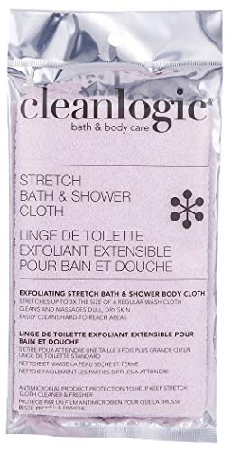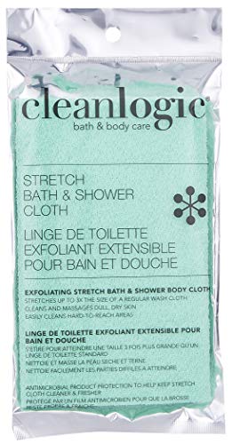 Stretches up to 3X the size of a regular wash cloth cleans and massages dull, dry skin easily reaches hard- to-clean areas, such as your back with added antimicrobial product protection.Gently scrubs and revives your skin for the ultimate clean feeling