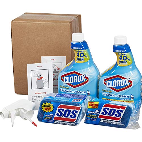With 2 bottles of Clorox Clean-Up Bleach Cleaner Spray in Fresh scent and 4 S.O.S Sponges, this value pack combines a powerful cleaning solution with the sponges you need to scrub away germs and dirt. Clorox Clean-Up Bleach Cleaner Spray cleans and disinfects killing 99.9% of bacteria and viruses on hard non-porous surfaces, while the S.O.S All Surface Scrubber Sponge cuts through tough messes on most surfaces throughout your home. Packed with leak-proof seals, the 2 bottles of Clorox Clean-Up Bleach Cleaner are easy to use. Just peel the secure seal off the bottle, align the tip of the trigger to the opening, insert the trigger into the bottle and press down until the trigger clicks into place. , The combination of Clorox Clean Up and S.O.S sponges are perfect for everyday clean up in the kitchen or bathroom. Spray Clorox Clean-Up Bleach Cleaner on countertops or bathroom tile to help kill viruses and germs and remove a variety of stains. With the angled shape of the S.O.S Sponge, you can reach those hard to get areas. Get the power of clean with Clorox Clean-Up Bleach Cleaner Spray and S.O.S All Surface Scrubber Sponge Value Pack.ALL PURPOSE CLEANER: Make your home sparkle with Clorox Clean-Up All Purpose Cleaner that cleans, disinfects and kills 99.9% of viruses and bacteria; comes with 4 S.O.S sponges so you're ready to clean