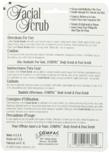 A best-seller for over 30 years, the Compac Hartfelt Facial Scrub Round Sponge gently cleans and exfoliates, leaving your skin feeling soft and refreshed. Lather the scrub with your favorite face wash and warm water for a complete clean you can feel. Apply in a circular motion for no more than a few seconds. Gentle enough for almost any skin type. Round shape perfect for washing face and neck.Leaves skin feeling soft and refreshed