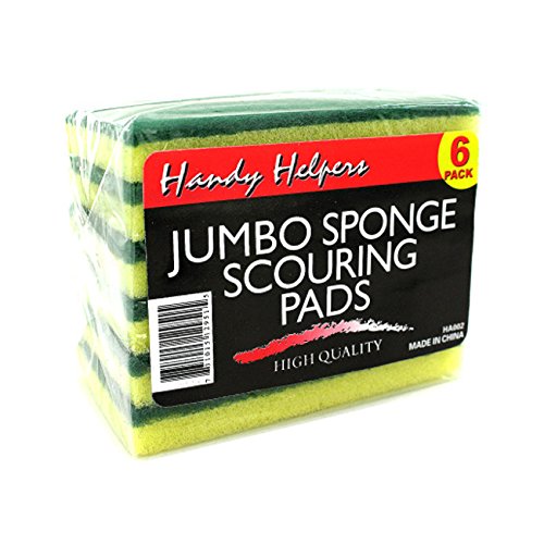 A kitchen essential that helps scrub away dirt and grime from dishes, this Jumbo Sponge Scouring Pads Set is made with a yellow foam and green nylon scrubber. Each pack comes with 6 sponges and they are packaged in shrink wrap. Sponges measure 4 1/2" x x 2 1/2" x 3/4" with a thickness of nearly 1/2". This item comes assorted. The shipment of the product color will be based on the available colors at the time of order (or you may receive a random color/size/type). The sizes displayed are approximate only. Product Type: Import. Color: Yellow, Green. Material: Nylon, Foam. Item Weight: 0.3599 lbs. Sold as Pack of 30. Approximate Package Weight: 10.8 lbs.NEW