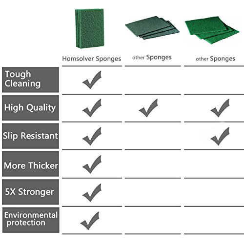 ✔【NO BAD SMELLS & NO ODER】 : Perhaps you are always confused by the oder and bad smell sponges, Now you have better one to select, Homsolver sponges are easy to keep clean. rinse-fresh technology ensures that no smells inside the sponges, quick dry sponge always keep it from oder. Easy and fast to clean all the tools in your kitchen and other places. Ideal for cleaning dishes, pans, glasses, milk bottles, vases, cups, mugs, toaster oven, barbecue grill, baking pan, sink, non-stick pots etc.