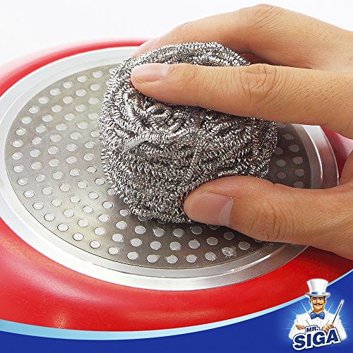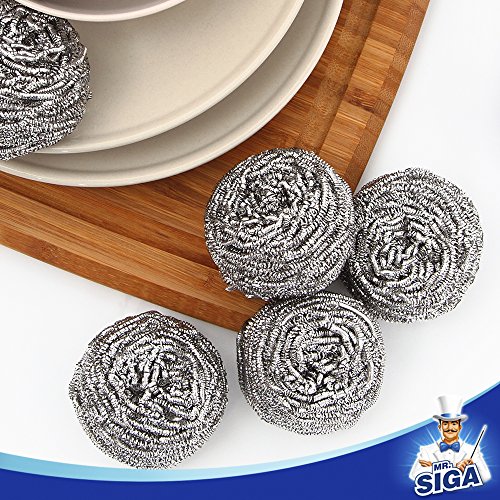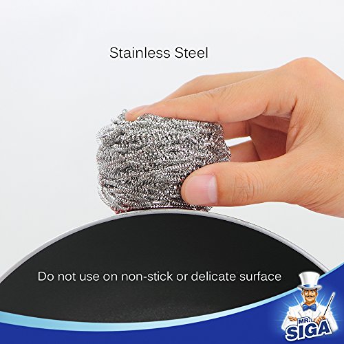 MR. SIGA Stainless Steel Scourer, 30g, Pack of 12. Cleans pot, pans, grills and oven, removes grease, stubborn dirt easily. Heavy duty & durable, soft and stretchy, not hurting hands. Suggestion: Do not use on non-stick or delicate surfaces. Enjoy Cleaning, MR. SIGA providing high quality cleaning products for everyone, to make cleaning becomes effortless & more comfortable, our Mission is to "Let the Housework easier, Make the World Cleaner".Stainless Steel Scourer, 30g, Pack of 12