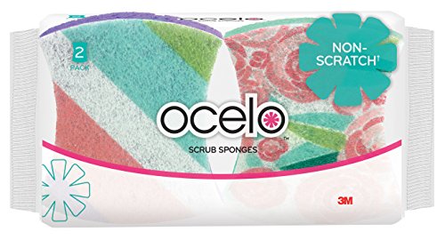 Make cleaning fun with ocelo sponges in fresh, vibrant colors! ocelo sponges use 3M's unique antimicrobial StayFresh technology to resist the growth of bacterial odors through hundreds of uses. Ideal for household cleaning tasks. ocelo Non-Scratch Scrub Sponges clean delicate surfaces without scratching, and are ideal for glassware, china, and stainless steel.