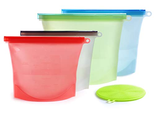 ECONOMIC - Package included 4 set and different color preservation bags plus silicone scrubber sponge. Can be used in high and low temperatures and will lasts much longer time than simple plastic containers.