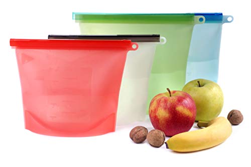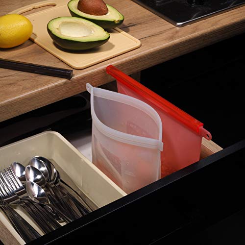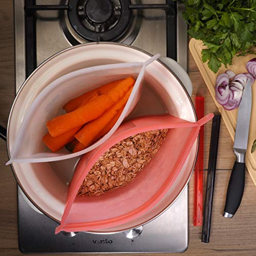 STYLISH ERGONOMIC SNACK BAGS - takes less place and store more products,fresh seal reusable silicone food storage bag food, smoothies, juices thanks to it's volume and design. GUARANTEE from us, If you are not fully satisfied with the quality and function of our product return for a full refund.