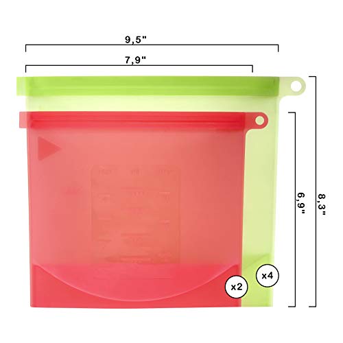 Specification: Material: Silicone One Bag Size: 8.07*7.09inch One Bag Weight: 0.32lb Color: Red, Blue, Green, Grey Function: Food storage, vegetable, fruit, meat, drink, juiced preservation, food container for cooking, picnic, hiking, camping, indoor and outdoor activities. Package including 4 x Reusable Silicone Bags 1 x Silicone Scrubber Sponge