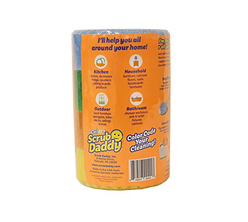 Scrub Daddy Colors make color-coding your cleaning jobs easy. Avoid cross-contamination by assigning different scrubbers to different applications or simply collect your favorites! Scrub Daddy is an innovative household scrubbing tool. His exclusive FlexTexture foam changes texture based on water temperature: firm in cold water for tough scrubbing and soft in warm water for light cleaning. He works so well with water alone many times you can skip using a chemical detergent. Unlike traditional sponges, Scrub Daddy resists stains, mold, and odors while never scratching your surfaces. And if you thought the smiley face was just for looks, think again! His eyes hold onto your fingers for a 360 degree reach (great for tall glasses) and his mouth cleans both sides of your utensils at the same time. Plus, Scrub Daddy rinses clean after use and is top rack dishwasher safe! Use him in the kitchen and beyond.TEMPERATURE CONTROLLED SCRUB - You control your scrubbing power! Scrub Daddy's FlexTexture foam is firm in cold water for tough scrubbing and soft in warm water for light cleaning. With FlexTexture, you have the right tool for every mess.