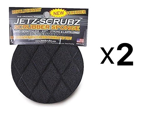 The Original Magic Jetz Scrubz J22 Scrubber Sponge Round (Black Sponge) 2 CountWon't scratch chrome, copper, stainless steel, anodized surfaces, non-stick cookware, glass, crystal, porcelain, china, ceramics and so on